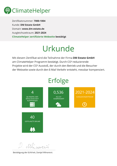 ClimateHelper zertifizierte Webseite bestätigt